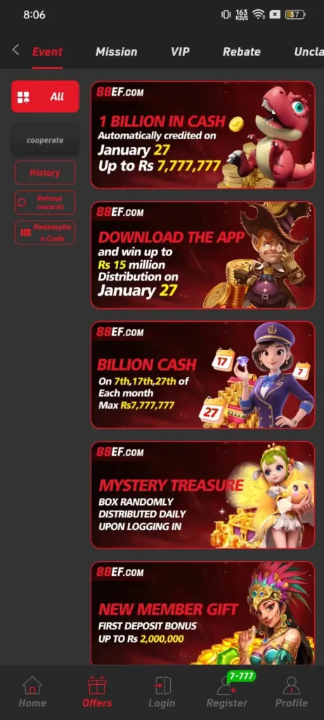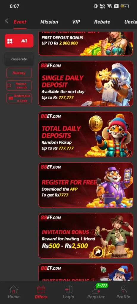 Now here’s the part everyone loves: the referral program. Bring your friends to 88EF, and you get up to RS. 666 for each person who joins using your link. That’s serious money just for sharing an app. It stops being just a game at that point. You’re building a side income while your friends also get a chance to earn. More friends mean more cash in your pocket.